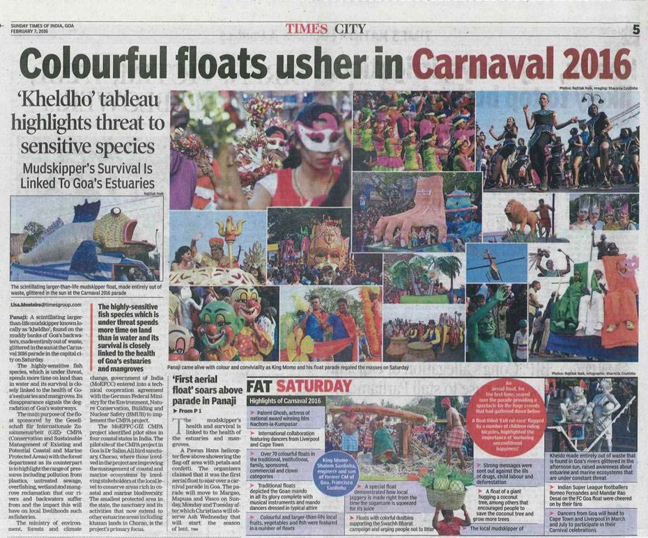 ‘Kheldho’ float supported by GIZ’s CMPA Project and the Goa Forest Department glittered at the Goa Carnival 2016 parade.
