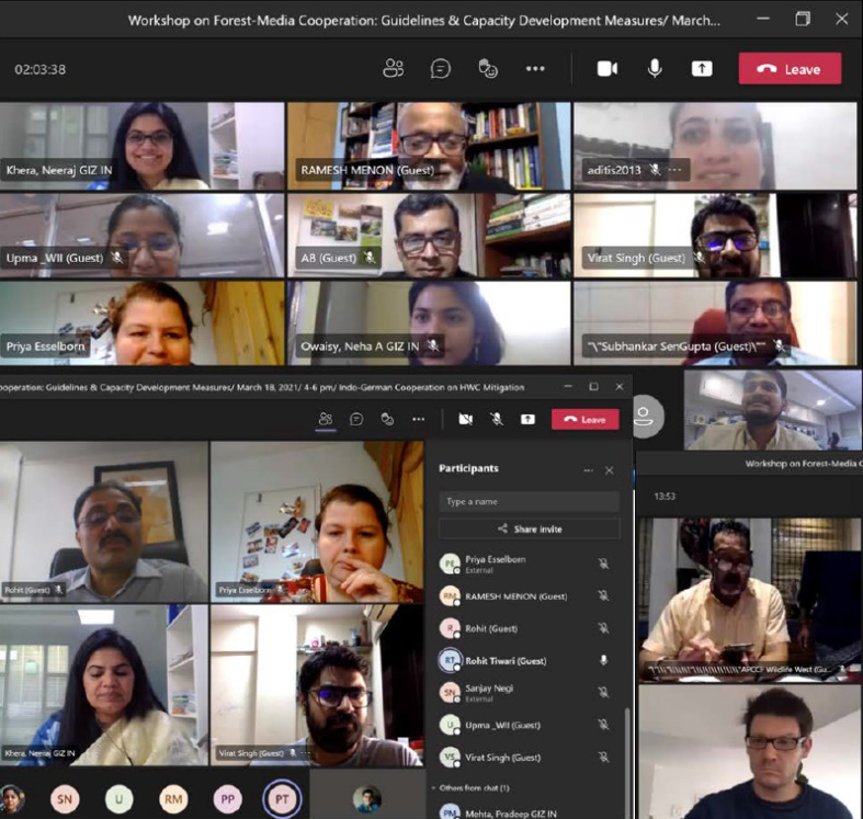 A meeting of the Group of Coordinators and Authors was organised on 18 March 2021 to bring together the core group of experts and institutions to brainstorm and finalise the way forward for the guidelines and capacity development measures for media-forest cooperation on HWC Mitigation in India.