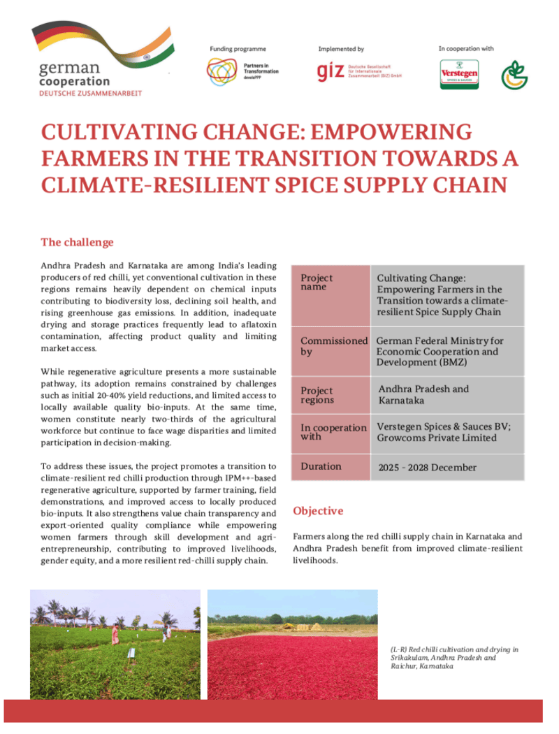| German Federal Ministry for Economic Cooperation and Development (BMZ) | Verstegen Spices & Sauces BV; Growcoms Private Limited |